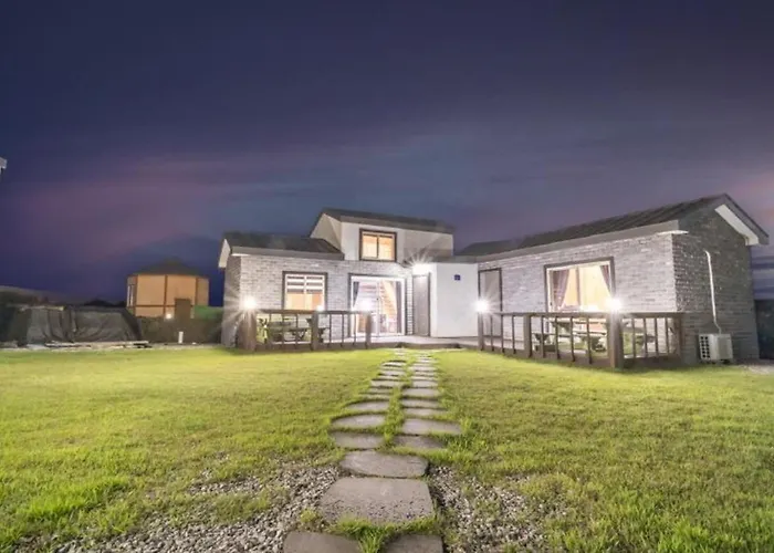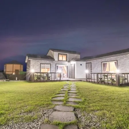 The 7-room Jeju Bijalim Pension villa offers proximity to nearby tourist spots, such as the Manjanggul Lava Tube, situated about 10 minutes' drive away.